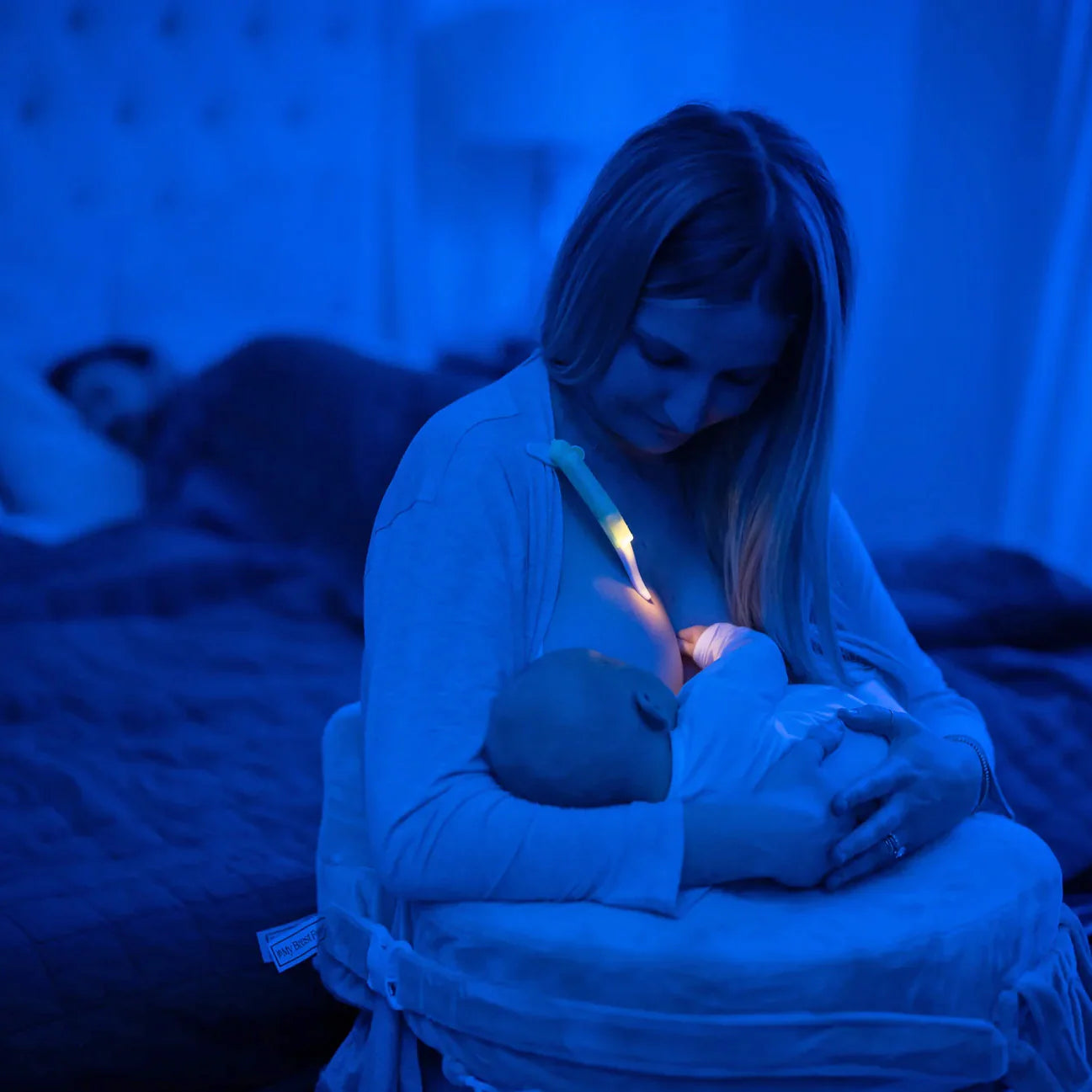 Achieving a proper latch can be especially challenging when you're sleep-deprived. LatchLight’s gentle, warm glow minimizes sleep disruptions for both you and your baby and is wearable so your hands are free to hold and position your baby. Its flexible, soft silicone tip helps you easily adjust your baby’s lips for an improved latch. Plus, the glow-in-the-dark design ensures you can always find it, even in the dark.